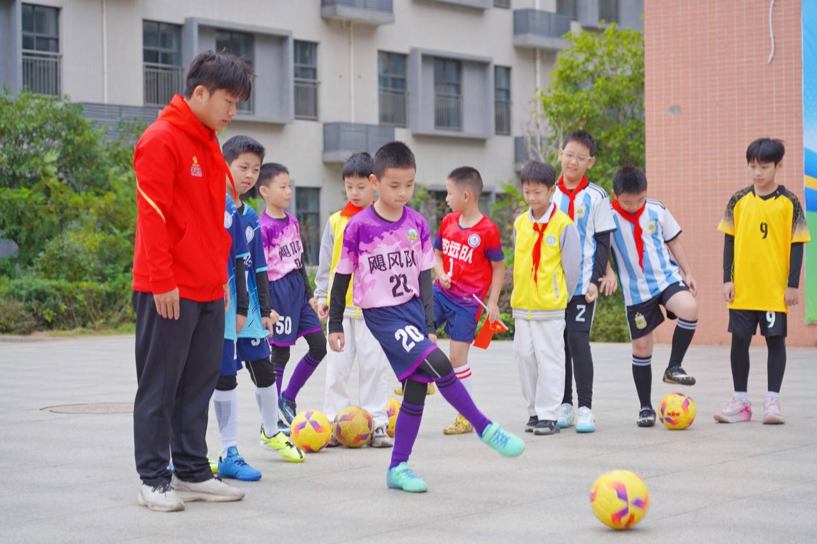 活动现场,特邀嘉宾江西省城市足球超级联赛赣州市代表队主教练陆霖的登场将气氛推向高潮。他结合带队突破难关、斩获荣誉的亲身经历,生动阐释了足球运动中“坚持与团队”的真谛,并现场进行技术示范。更让师生振奋的是,四位从章江路小学走出的“足球榜样”重返校园:“赣超”赣州市代表队球员肖闵鸣、张凇华、曾广志、梅昭昱。他们回忆在校时的足球启蒙岁月,并用自己在各级赛事中的优异表现,为学弟学妹们树立了奋斗标杆。