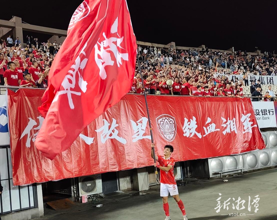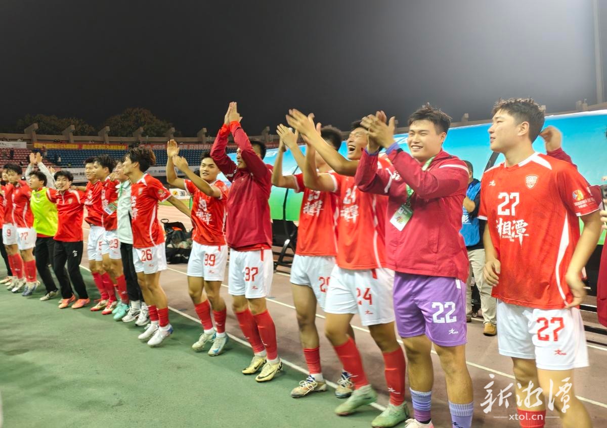 比赛的最后十几分钟,湘潭队仍积极拼抢,以顽强的斗志和团结的精神力图扩大战果。比赛临近结束,湘潭队进球功臣9号球员何阳钊被换下场,球迷报之以热烈掌声,场面让人动容。最终,1:1的比分保持到终场,湘潭队拿到赛事以来首个积分。比赛结束,湘潭球员集体来到湘潭球迷看台,感谢他们在球队处于低谷时的不放弃,球迷们报之以热烈掌声。整场比赛下来,尽管拼抢激烈,但双方没有火药味,只有对足球的较真和对对手的尊重。