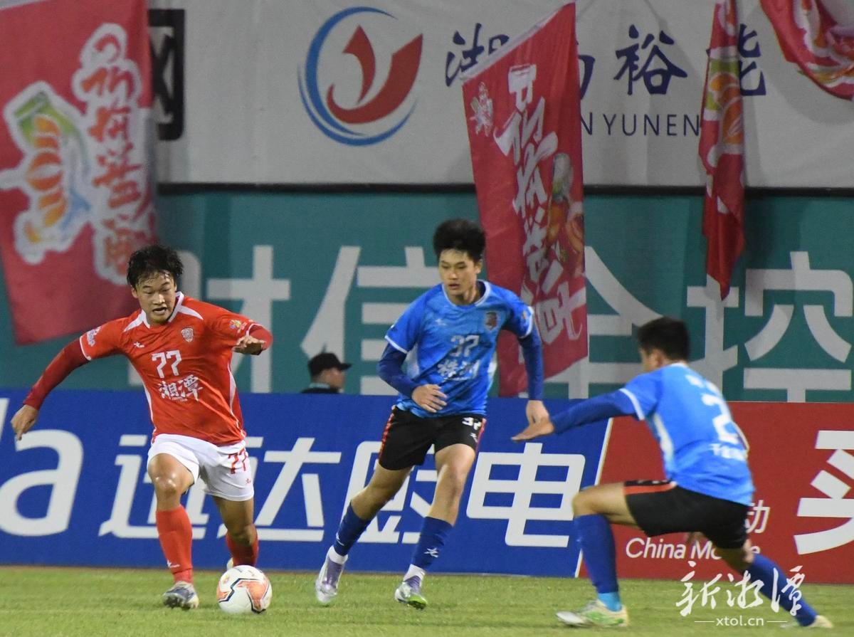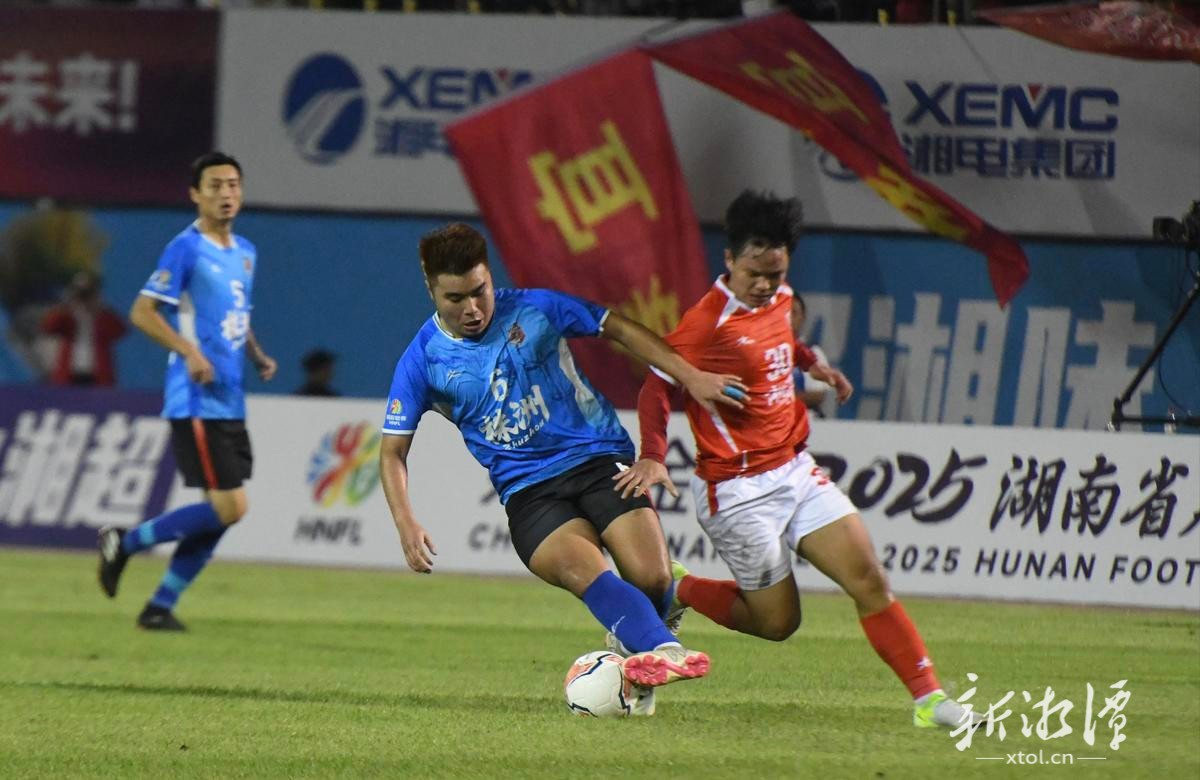 下半场易边再战,不甘心平局的株洲队一口气更换了5名球员。然而,就在株洲队频频压上之际,湘潭队几波犀利的反击直接冲到株洲队禁区,接连逼得株洲队频频解围,现场球迷一片欢呼。第53分钟,湘潭队获得角球,角球开出被破坏后二次传入禁区,株洲队门将出击没把球控制住,湘潭队9号球员何阳钊截球后一脚小角度抽射,皮球缓缓滚入网窝。1:0,湘潭队领先!此前,何阳钊在客场对阵益阳的比赛中也攻入一球。