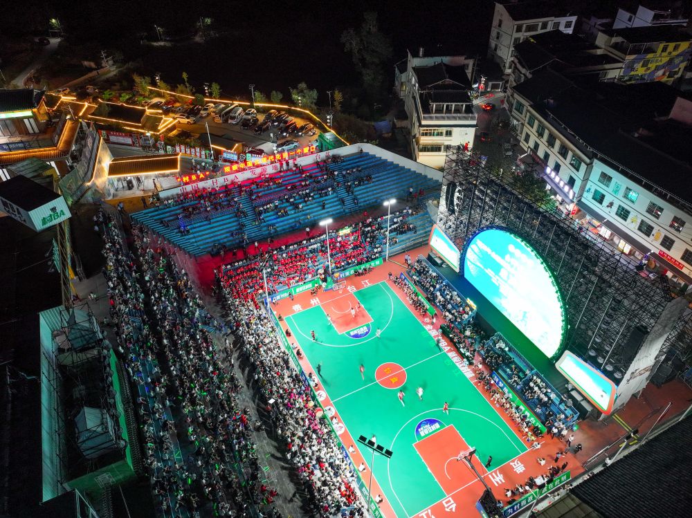 2025年10月12日,全国和美乡村篮球大赛(“村BA”)总决赛在贵州省台江县台盘村开赛。新华社发(袁福洪摄)